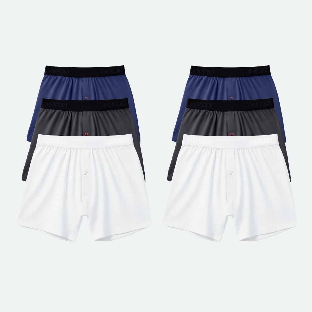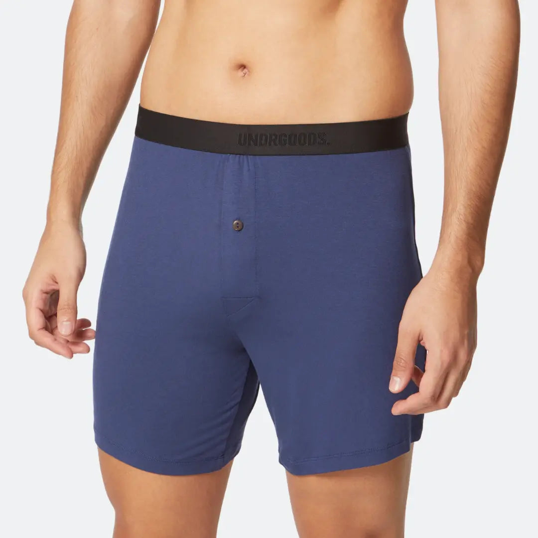 بوكسر بقصة مريحة يمنحك الحرية المطلقة. وهو يشبه البوكسر الكلاسيكي بقماشه المطاطي والناعم الملمس مايكرو مودال، لكنه يختلف عنه في تصميمه، فهو يأتي بقصة واسعة وفضفاضة أكثر. إذا كنت ترتدي بالعادة بوكسرات بطبعة مربعات بلون مغاير وبقماش غير مطاطي أبدًا (لا تقلق، سيبقى هذا السرّ بيننا)، فسيعجبك هذا البوكسر كثيرًا ولن تعرف قيمته إلّا عندما تجربه. حتى إن كنت تفضّل القصة الضيقة، فهذا التصميم رائع للنوم أو الاسترخاء أو مشاهدة حلقات متواصلة على Netflix. تفاصيل تهمك- حزام خصر أسود بسيط ومرن جدًا