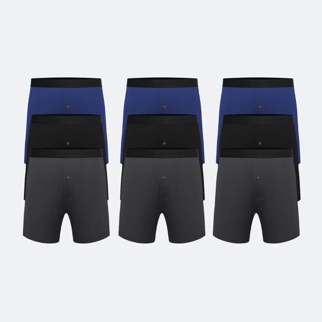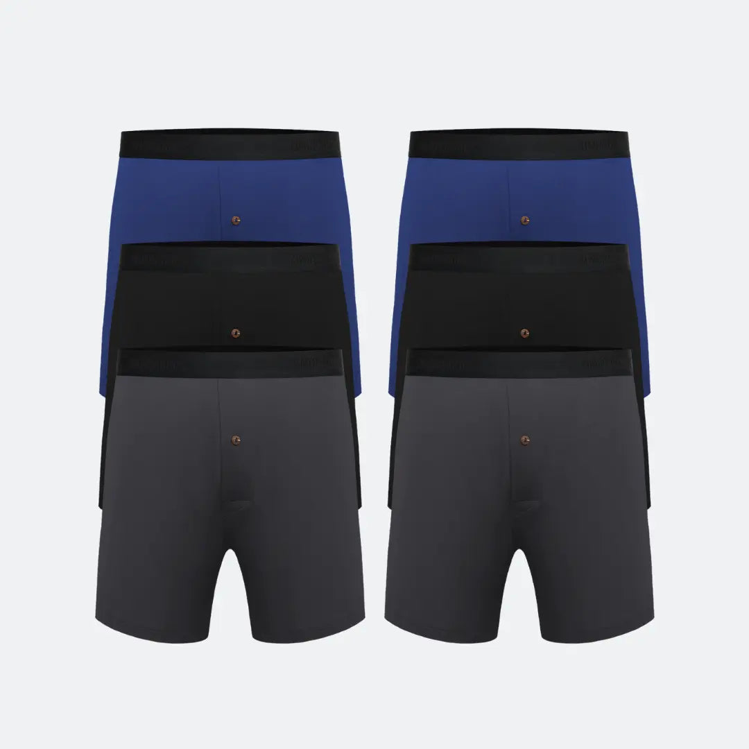 بوكسر بقصة مريحة يمنحك الحرية المطلقة. وهو يشبه البوكسر الكلاسيكي بقماشه المطاطي والناعم الملمس مايكرو مودال، لكنه يختلف عنه في تصميمه، فهو يأتي بقصة واسعة وفضفاضة أكثر. إذا كنت ترتدي بالعادة بوكسرات بطبعة مربعات بلون مغاير وبقماش غير مطاطي أبدًا (لا تقلق، سيبقى هذا السرّ بيننا)، فسيعجبك هذا البوكسر كثيرًا ولن تعرف قيمته إلّا عندما تجربه. حتى إن كنت تفضّل القصة الضيقة، فهذا التصميم رائع للنوم أو الاسترخاء أو مشاهدة حلقات متواصلة على Netflix. تفاصيل تهمك- حزام خصر أسود بسيط ومرن جدًا
