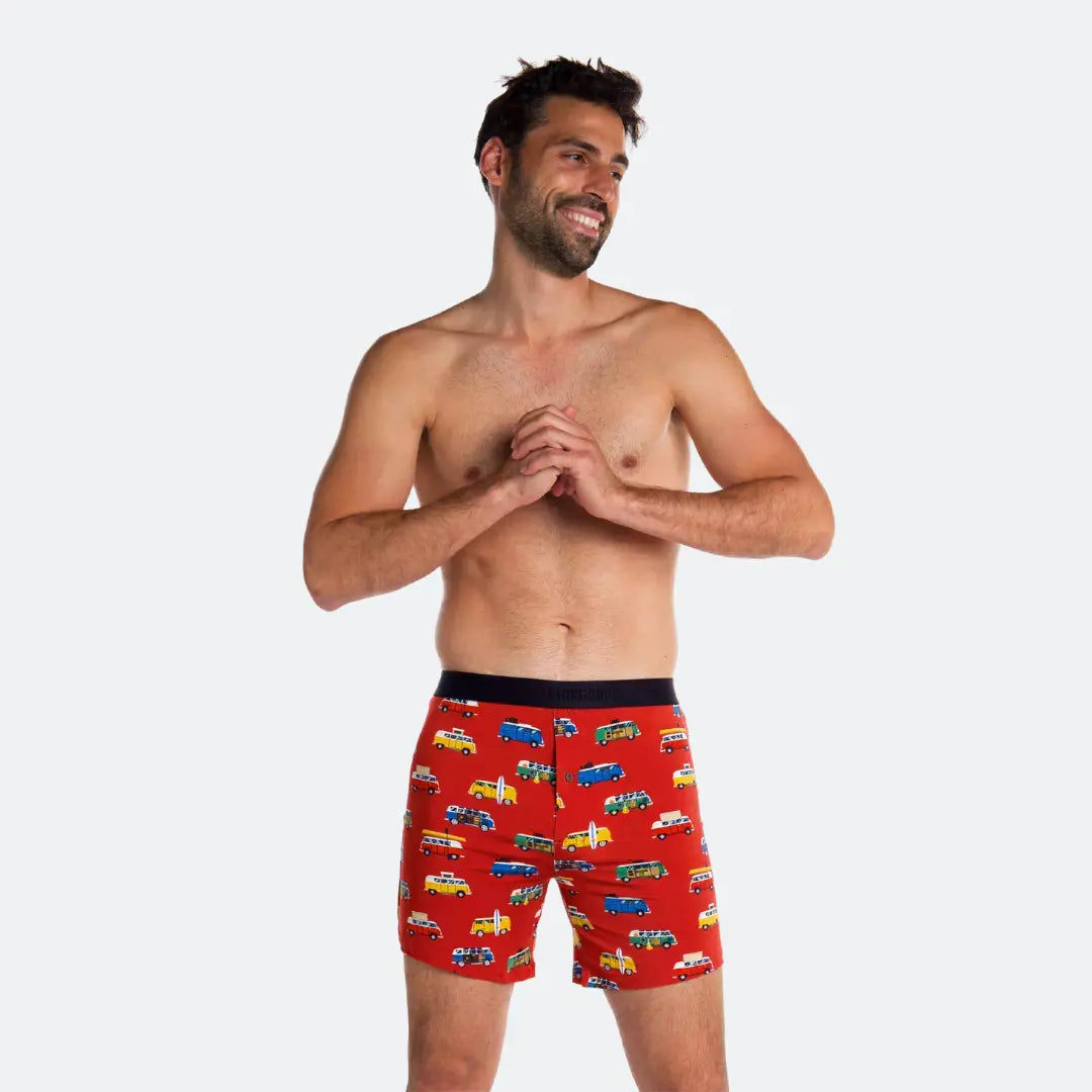 بوكسر بقصة مريحة يمنحك الحرية المطلقة. وهو يشبه البوكسر الكلاسيكي بقماشه المطاطي والناعم الملمس مايكرو مودال، لكنه يختلف عنه في تصميمه، فهو يأتي بقصة واسعة وفضفاضة أكثر. إذا كنت ترتدي بالعادة بوكسرات بطبعة مربعات بلون مغاير وبقماش غير مطاطي أبدًا (لا تقلق، سيبقى هذا السرّ بيننا)، فسيعجبك هذا البوكسر كثيرًا ولن تعرف قيمته إلّا عندما تجربه. حتى إن كنت تفضّل القصة الضيقة، فهذا التصميم رائع للنوم أو الاسترخاء أو مشاهدة حلقات متواصلة على Netflix. تفاصيل تهمك- حزام خصر أسود بسيط ومرن جدًا